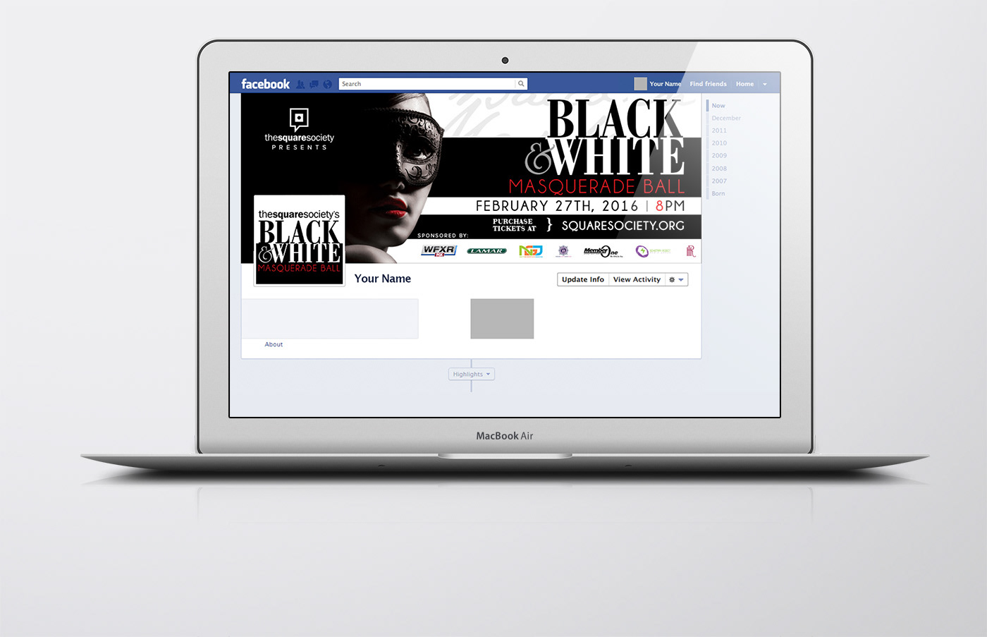 Print Collateral for a masquerade ball event for the Square Society, a local non-profit for young professionals. The theme was a 1950 black and white art deco style and the decor for the event was based on these designs.